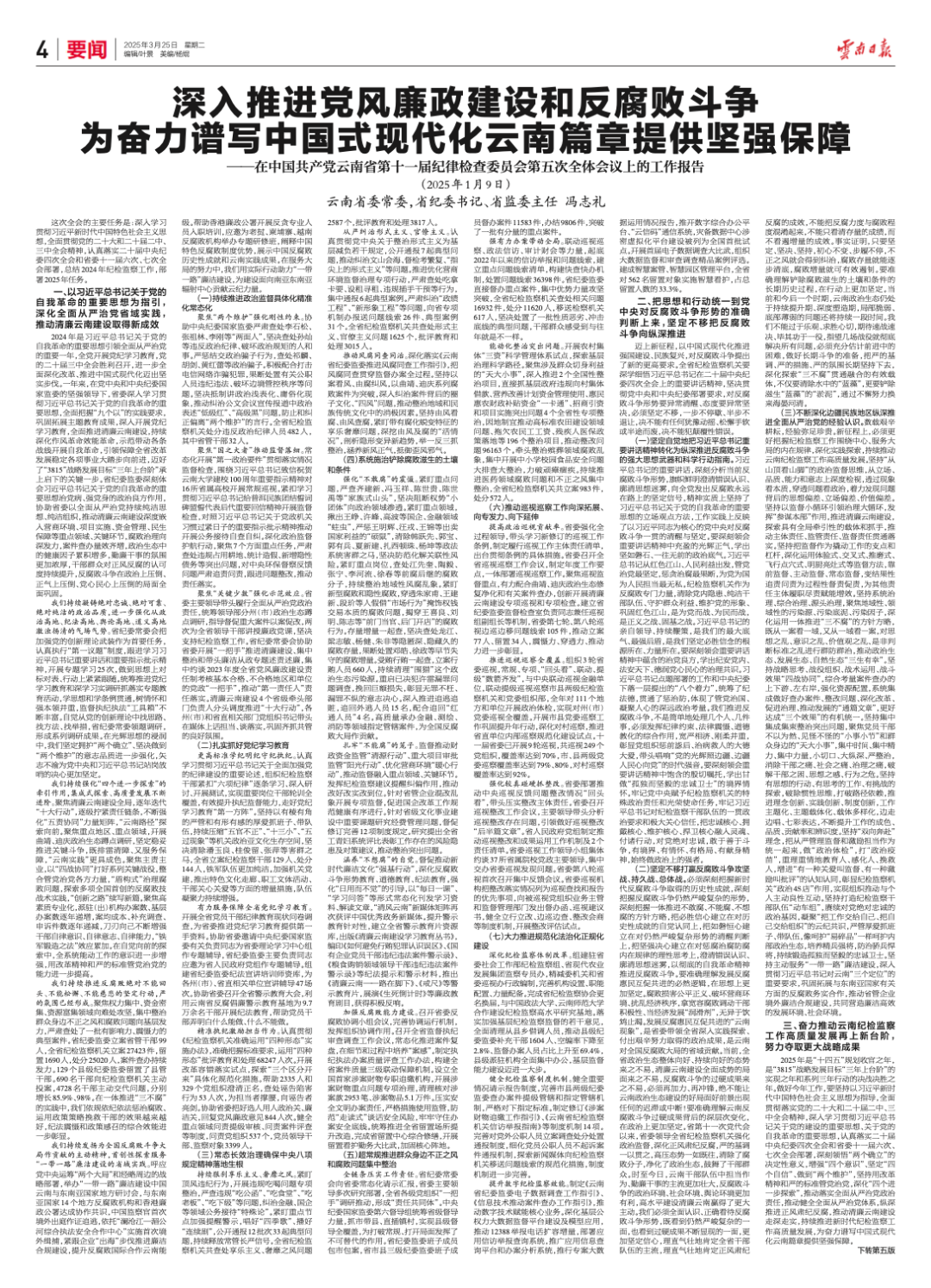 3月25日股票100倍杠杆t加0平台,《云南日报》第四版刊发了云南省委常委、省纪委书记、省监委主任冯志礼1月9日在云南省纪委十一届五次全会上作的工作报告。
